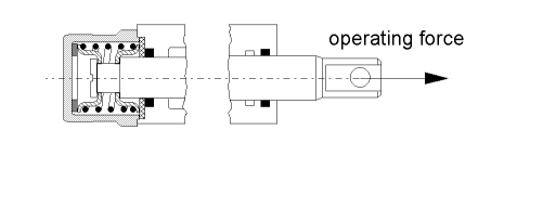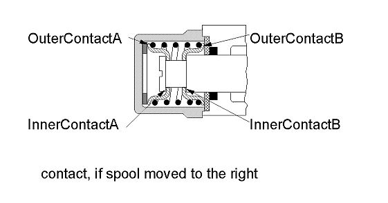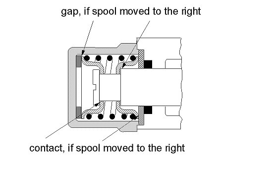 When designing hydraulic valves it is often necessary to hold the spool in a certain position as long as an external force is below a threshold value. If this force exceeds the threshold value a linear relation between force and position is desired. There are designs that need only one spring to accomplish this task. Using the ElastoGap elements this design can be modelled easily. Drawing of spool.
